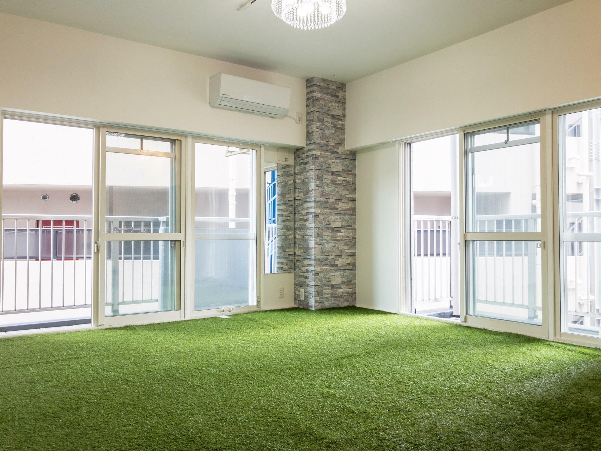 居室にはふかふかのリアル芝生マットを敷き詰めました!