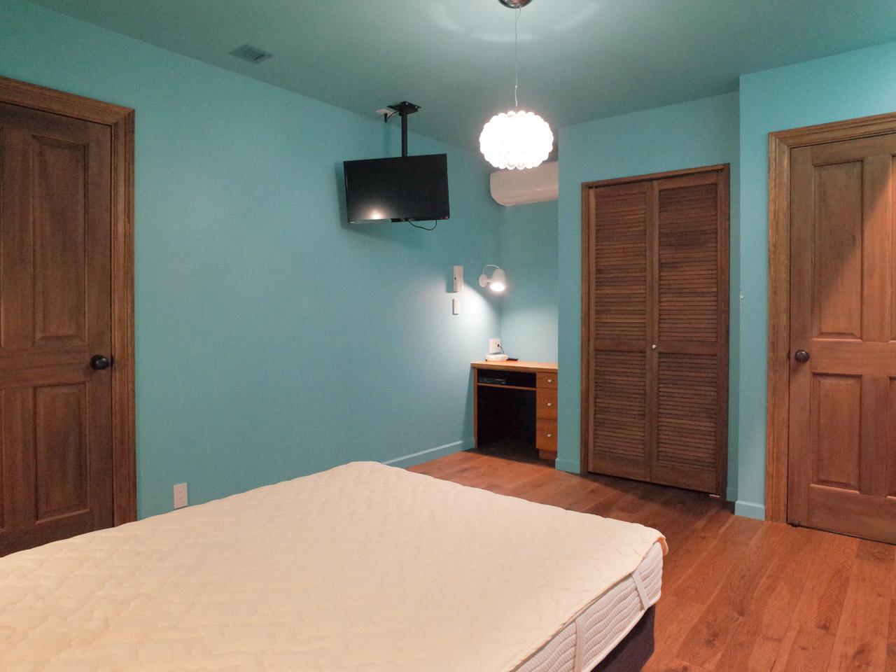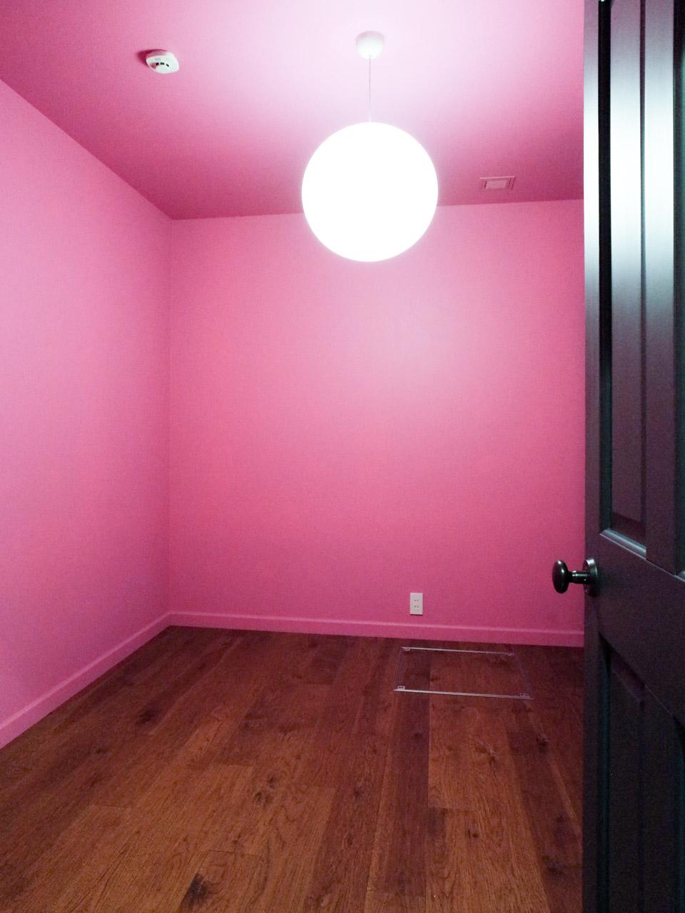 お部屋の壁紙はピンク、寝室の壁紙はライトブルー。