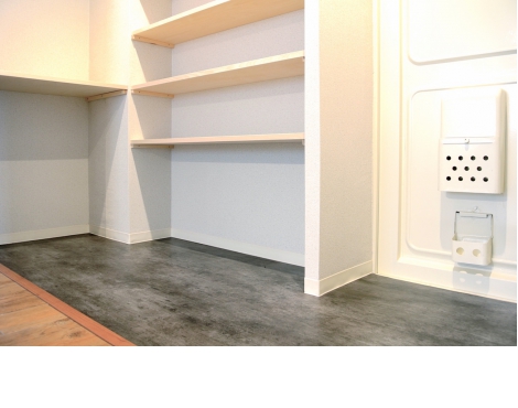 ちゃんと部屋の一部になってる、そのくらいの広さと存在感のある土間から始まる部屋。
