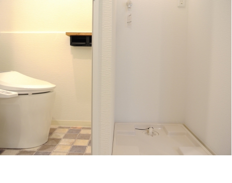 さりげなくいい。洗面台と洗濯機置場の上には同じ形のぽってりとした