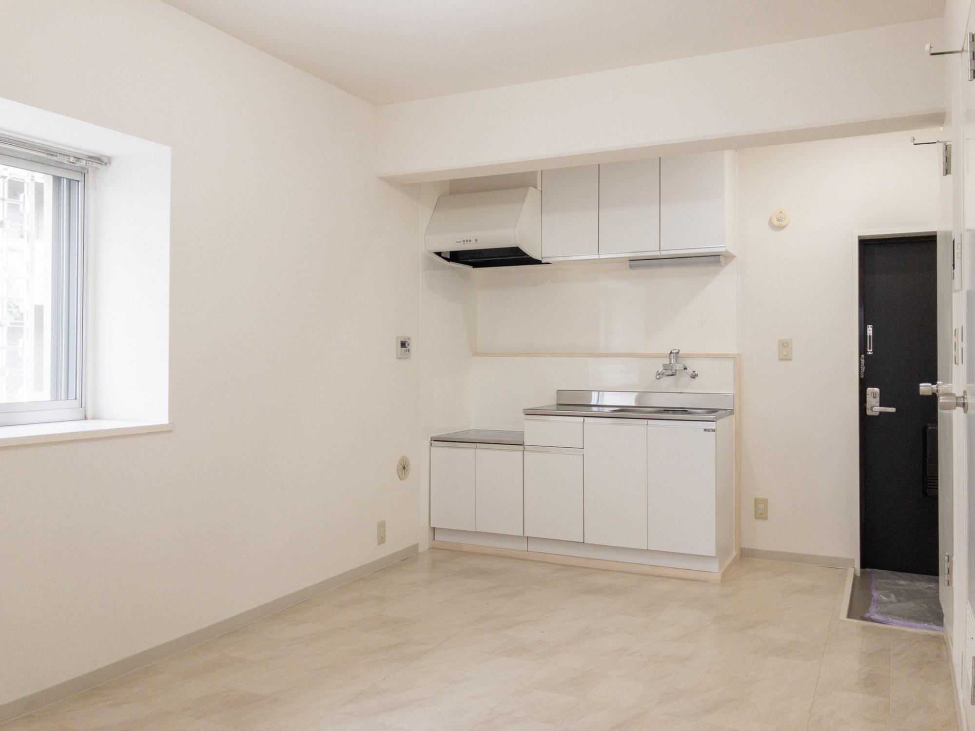 真っ白なDKは広さ8帖!内装はシンプルですが、出窓が良いアクセントになっています。