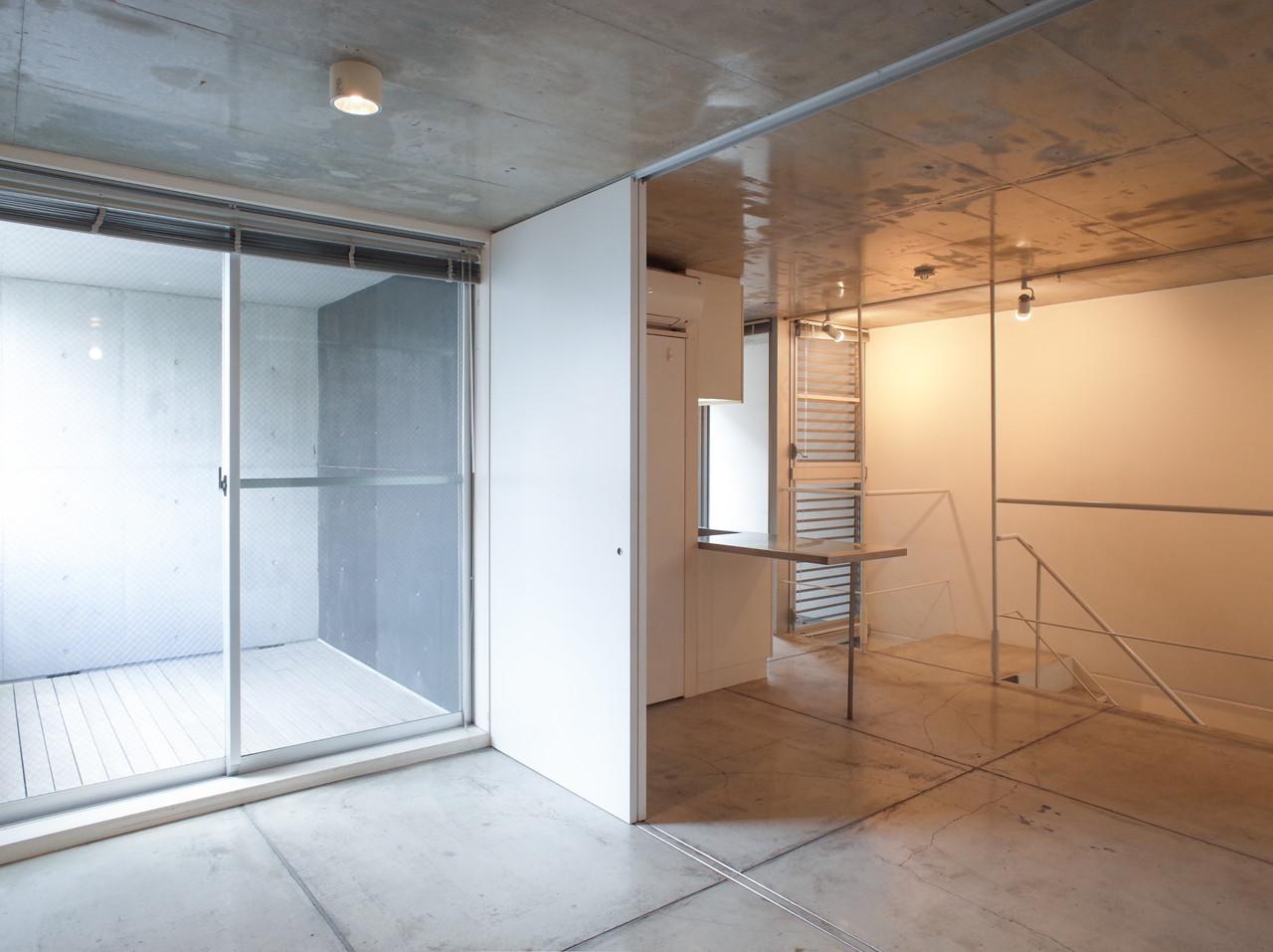 3階にキッチンと居室、4階は広いバルコニーに囲まれた寝室があるメゾネットタイプ。