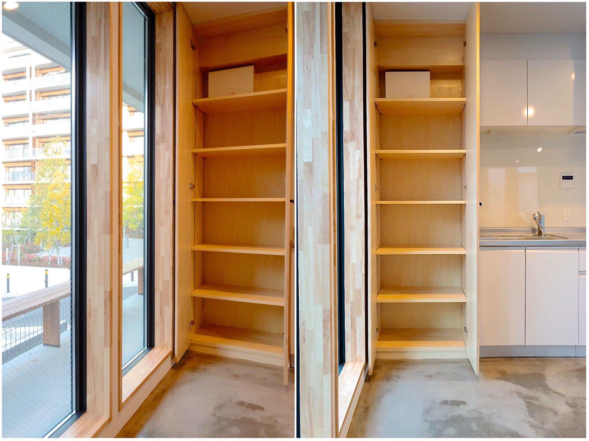 キッチンとサニタリースペース、玄関脇にシューズボックスがある以外、