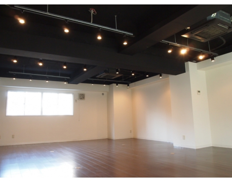 真っ黒に塗装された天井に、黒いスポットライトと黒い空調機。