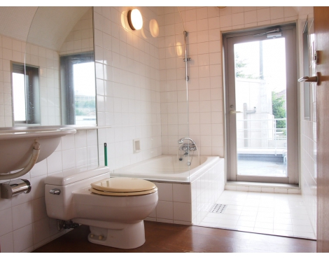 バスルーム横には大きなガラスのドアがあり、これが開放的で明るい!