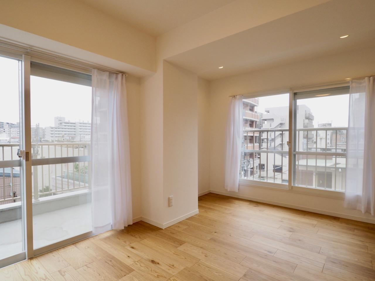 2つの洋室は、たっぷりとした奥行きのあるバルコニー向き。中層階ですが、バルコニーの先はJRの線路なので眺望は抜けます(二重サッシですが音に敏感な方はご注意を)。東向きで、太陽の光とともに気持ちよく目覚められそう。