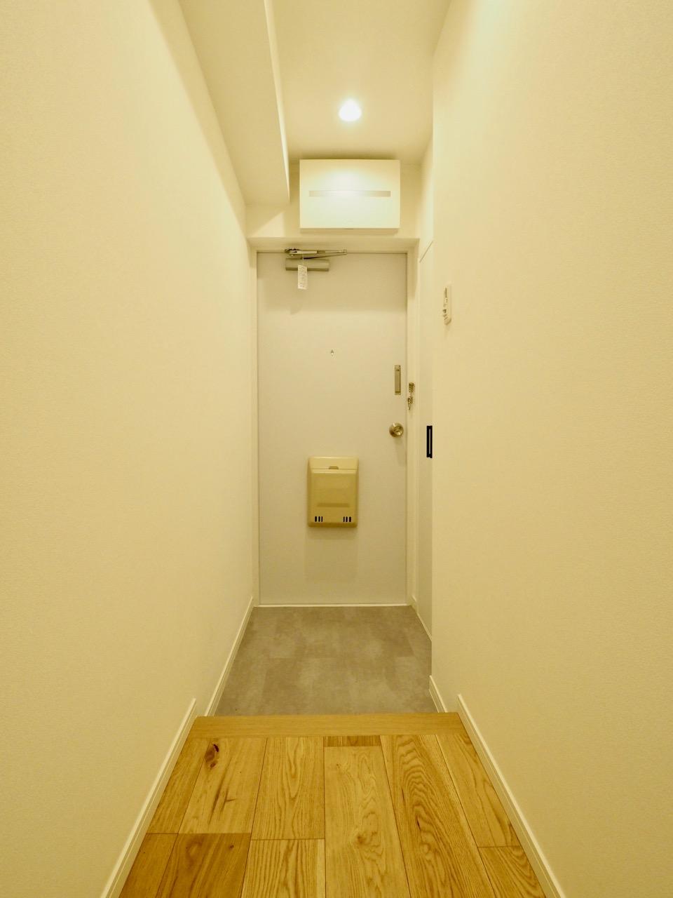 小さい頃から気になっていた、オレンジ屋根のレトロなマンション。柱や階段の意匠がなんとも素敵なエントランスを抜けて4階へ。