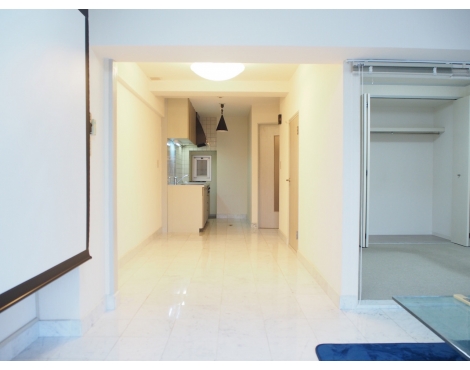 このお部屋の最大の特徴は何といっても奥のLDKにある巨大スクリーンです。