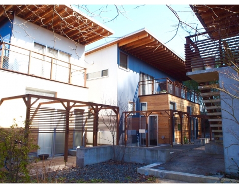 木材をふんだんに使い、自然と寄り添うように作られたテラスハウス。