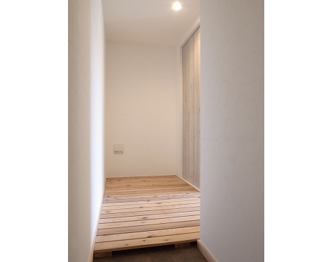 何と言っても、玄関からすぐに広めの収納スペースへ直結していること。