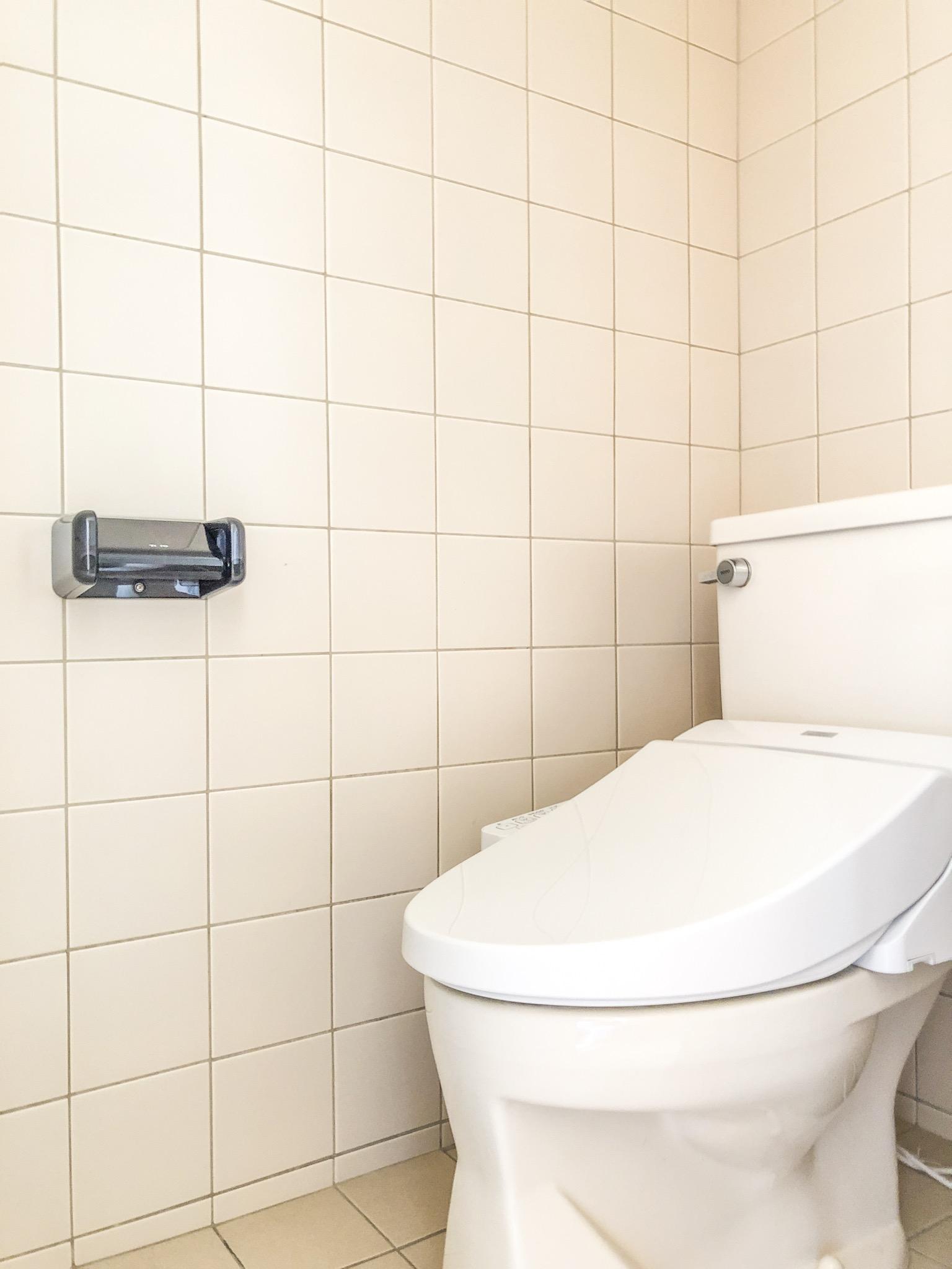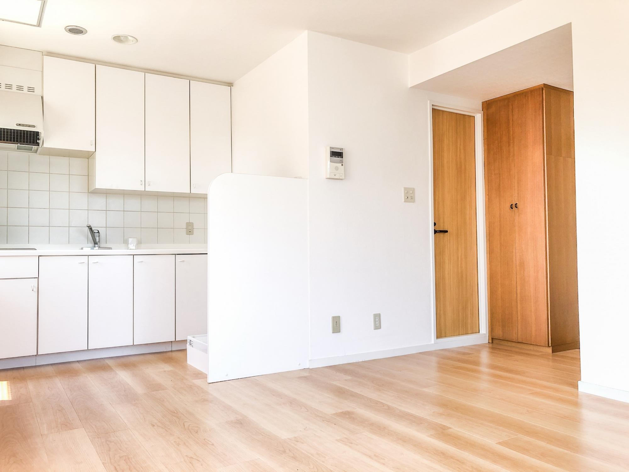 開けた瞬間オレンジの壁と真っ白なキッチン。