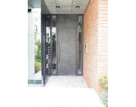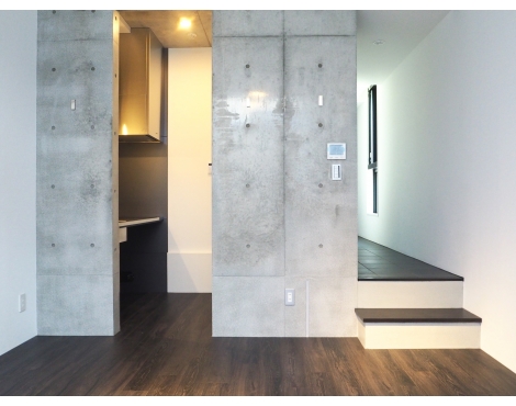 玄関を開けると、ブラックタイルのすっきりストレートな廊下。