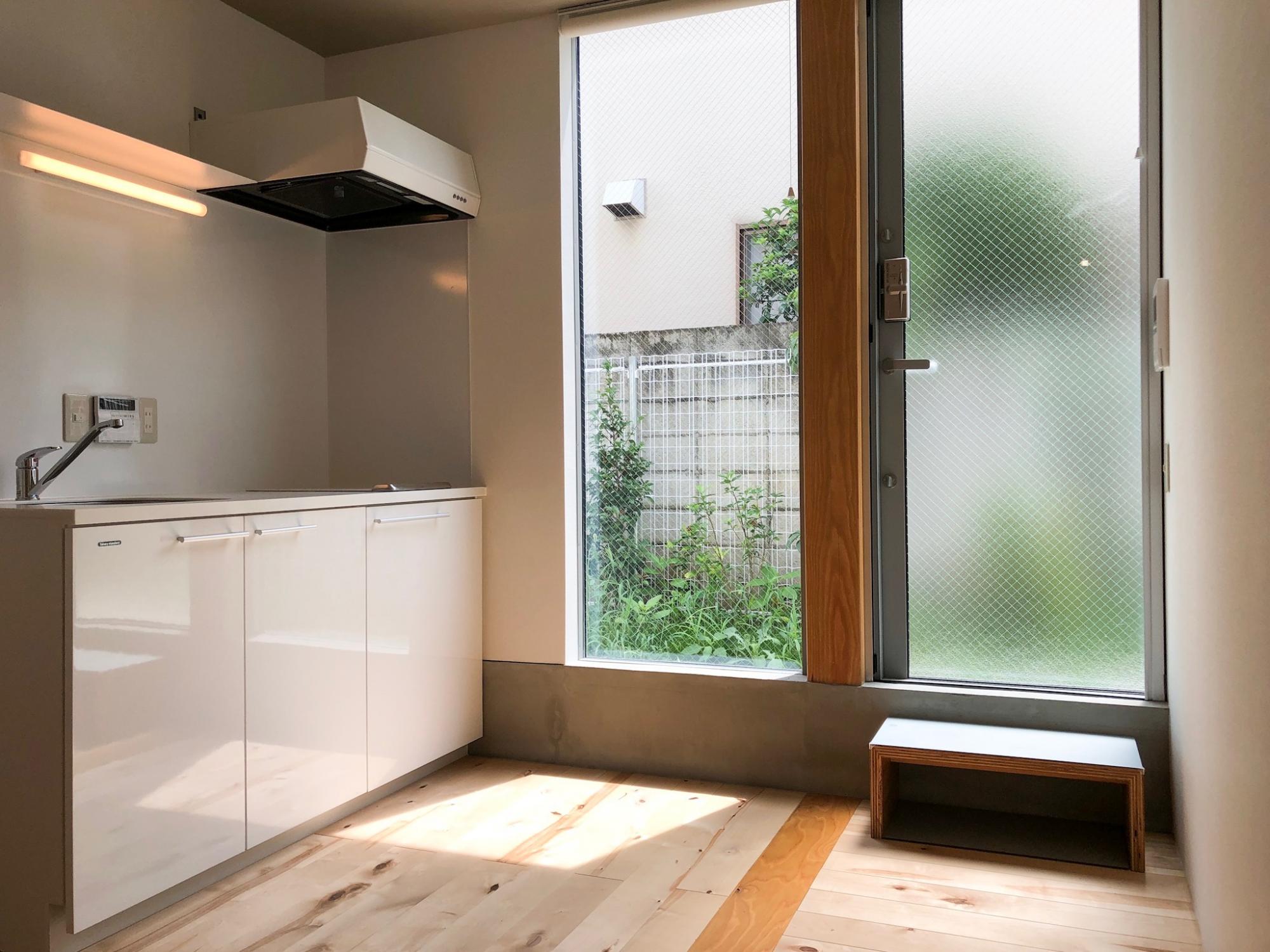 1階にキッチンと水回り、階段を登るとベットとソファを設置するのにぴったりの広さのお部屋が。