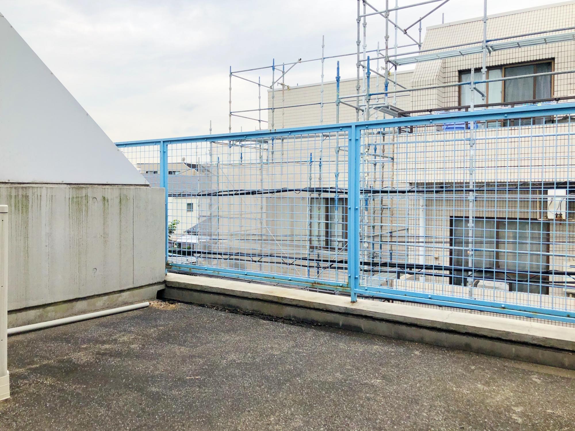 コンクリート打ちっぱなしの外観に、ブルーフェンスがちょっと珍しい感じです。