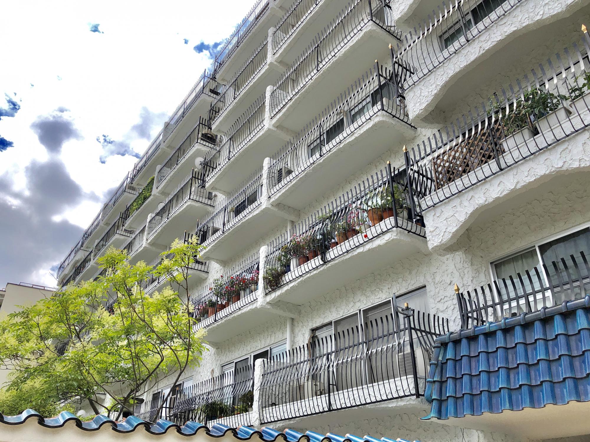 黒色の鉄製柵を配したバルコニー