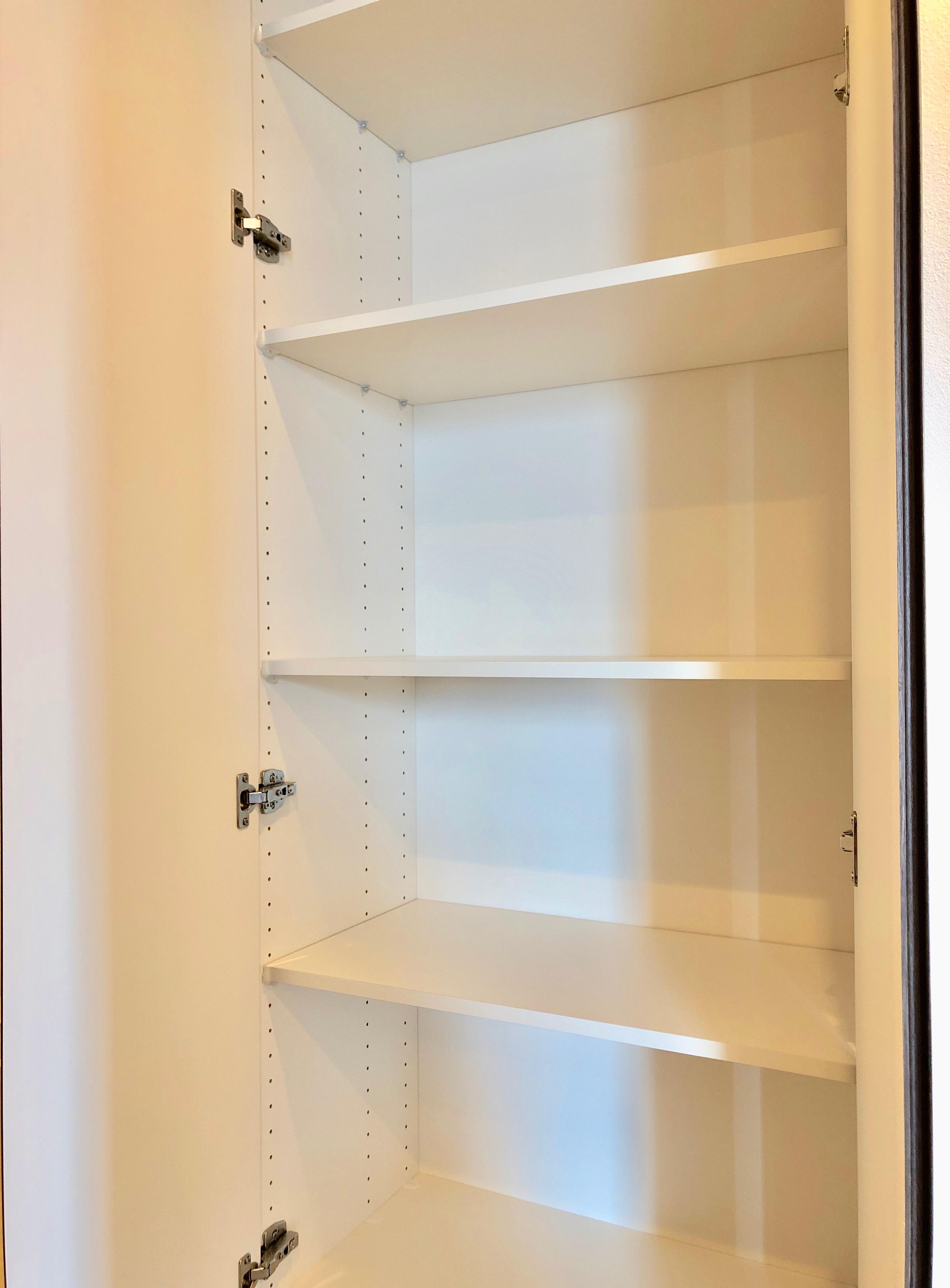 収納スペースも十分すぎるくらいありますよ。隠したいものは全部隠しちゃって、部屋を広ーく使っちゃいましょう。