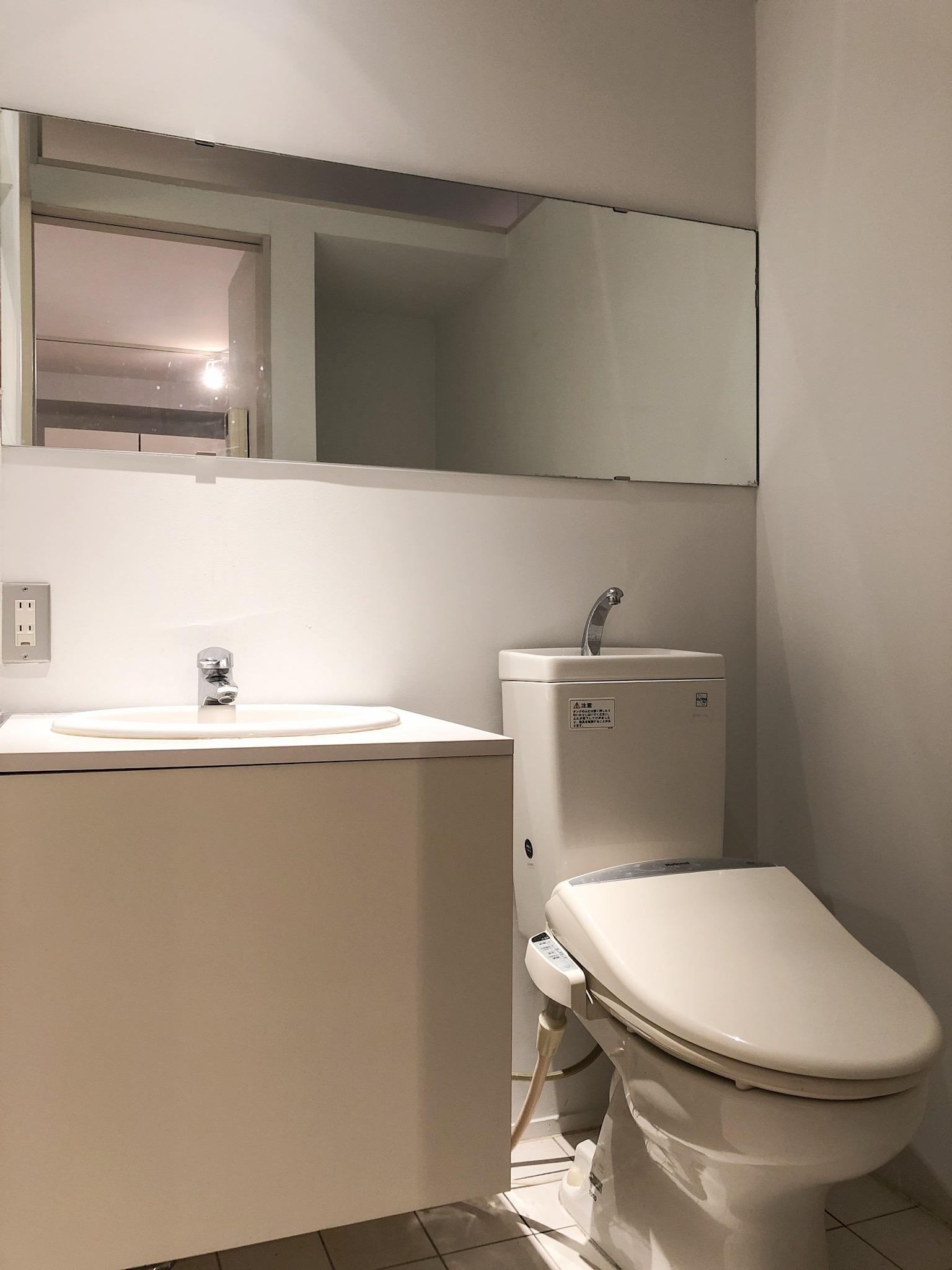 洗面所のミニマムなデザイン(鏡の感じが素敵)
