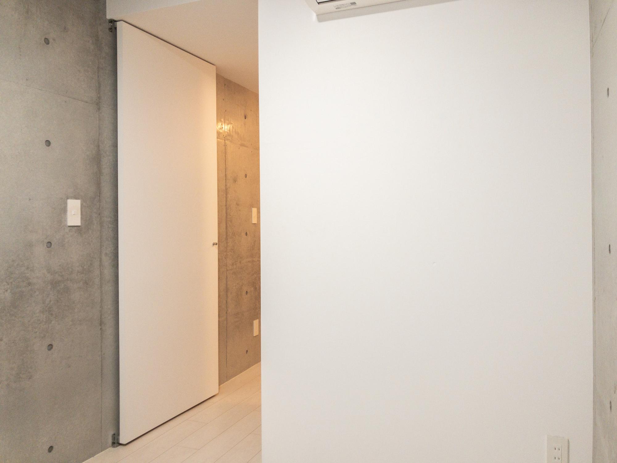 真っ直ぐなお部屋はスタイリッシュで白と打ちっ放しのコントラストが美しい。
