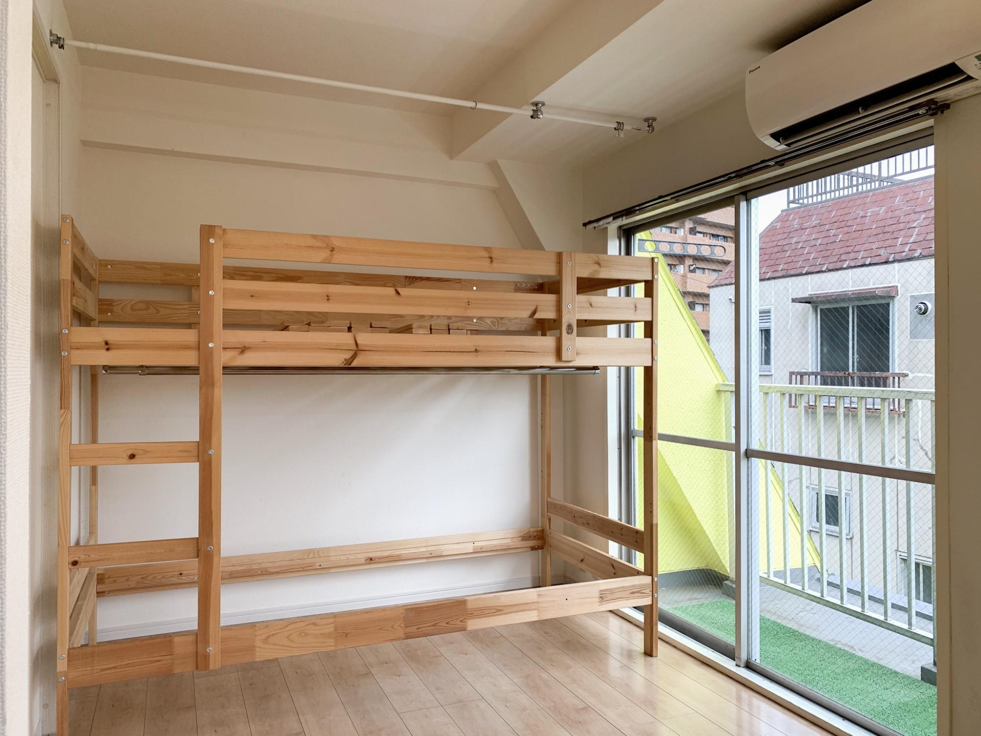 コンパクトですが、備え付けのロフトベッドがついていて、