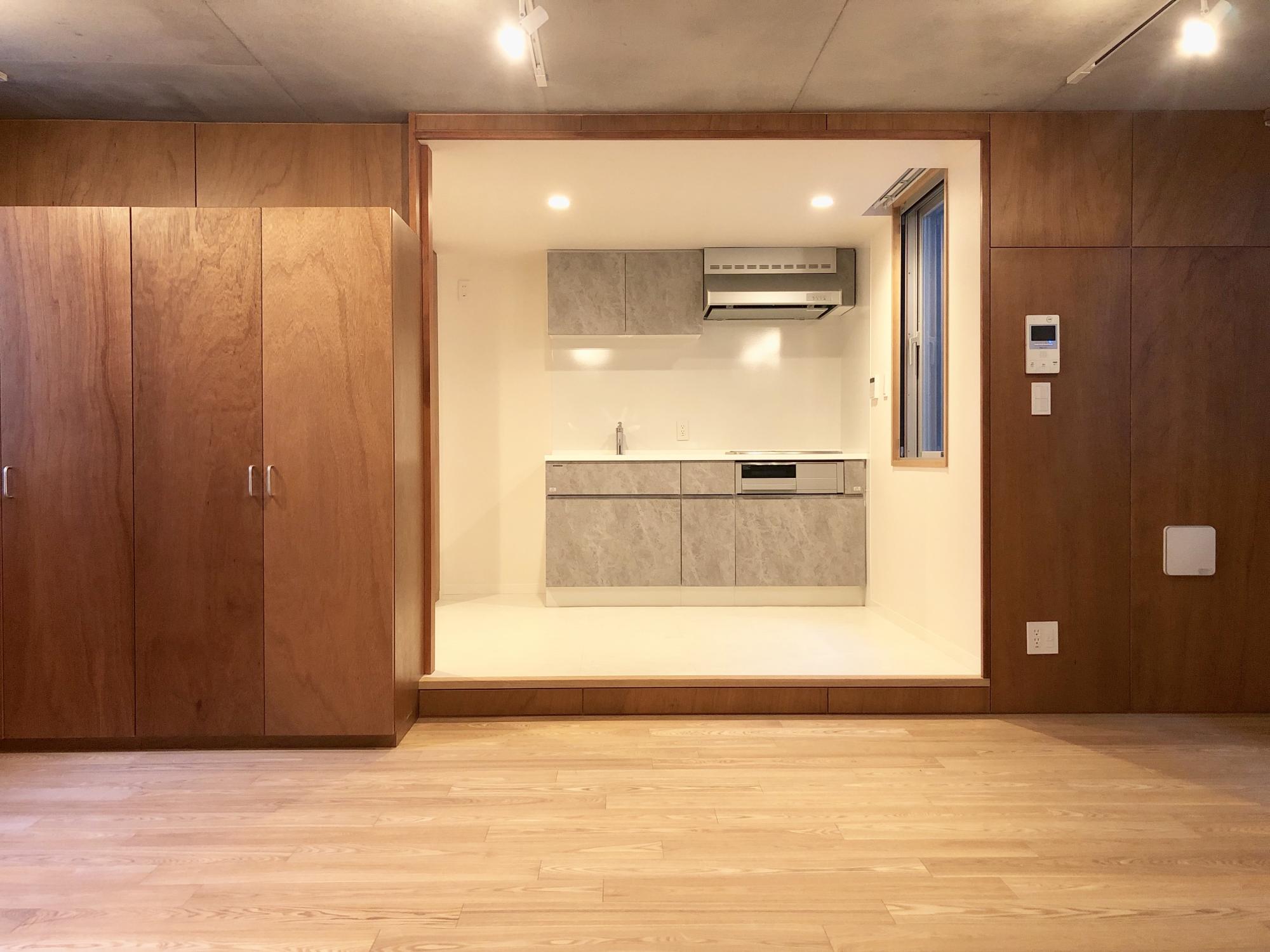 こちらのB号室はワンルームタイプ。南東向きの1階角部屋です。
