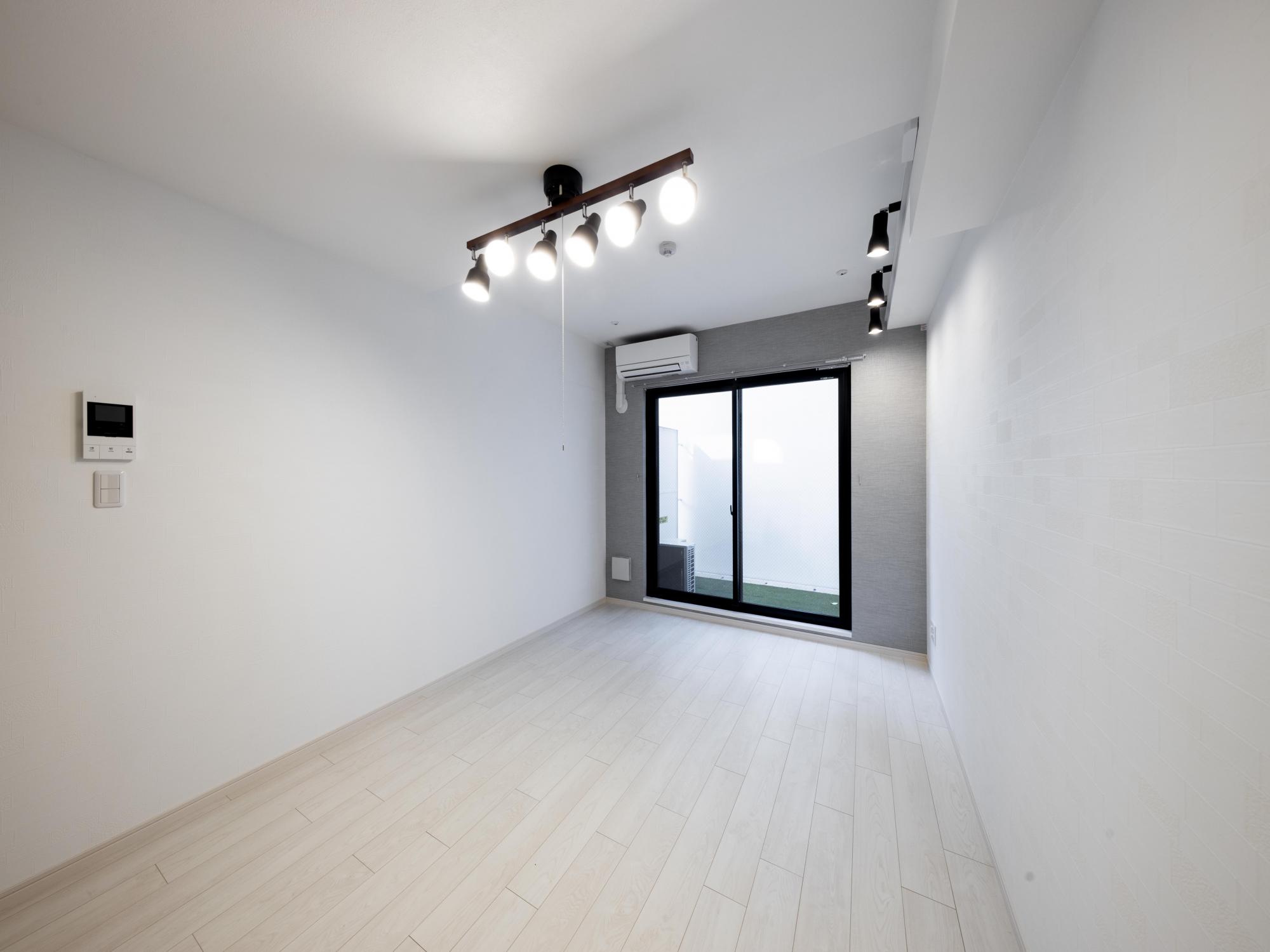 1階のお部屋はシンプルだけど、一辺だけ色つきの壁なのがポイント。