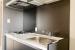 水回りなどの設備はまとまって部屋の中心にあり、左側には縦型二口コンロ付きのキッチン、洗濯機置き場がありました。
