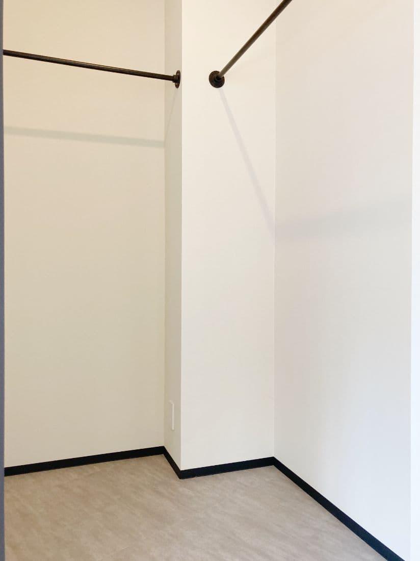 壁があることで、寝室空間も確保。セミダブルベッドがピッタリ置ける広さです。