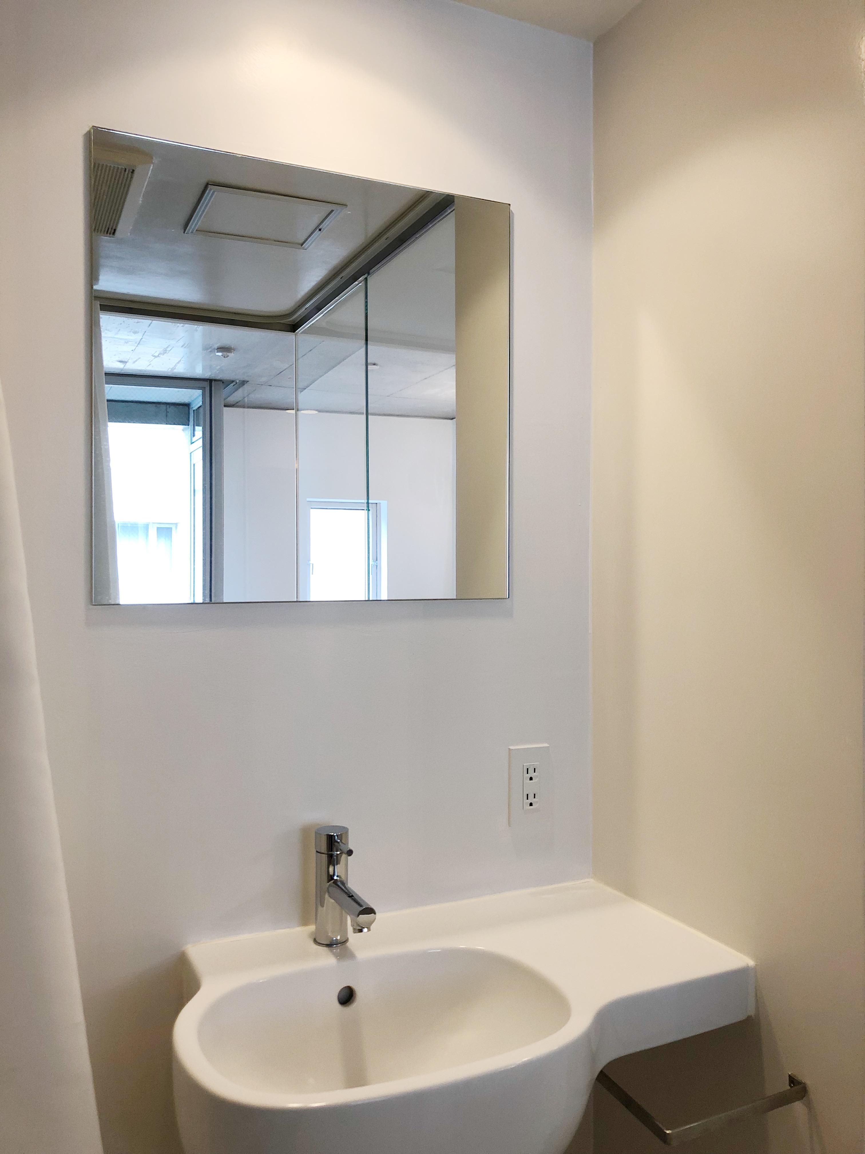 サニタリールームの壁に用いられた窓ガラスの使い方が印象的です。