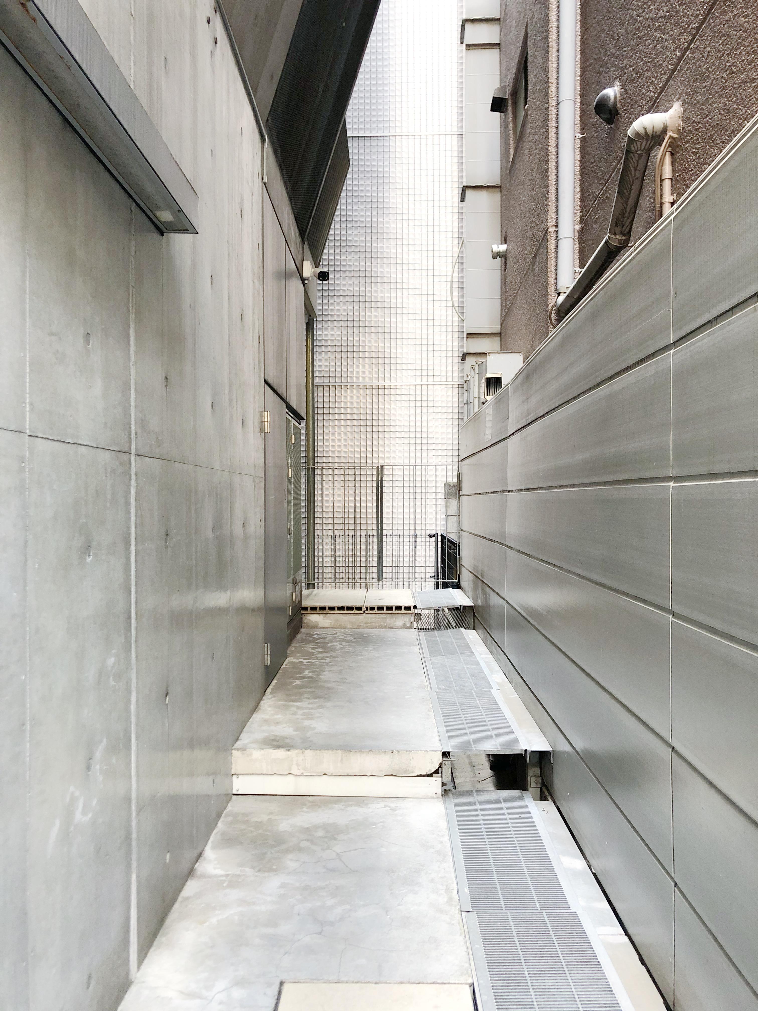 エントランス~玄関前まで、インダストリアルな雰囲気が続きます。