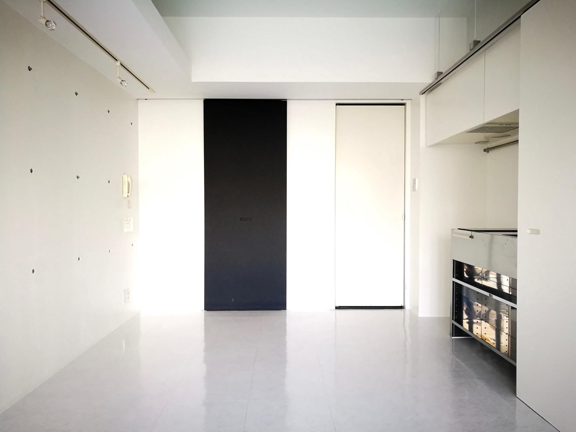 王道のデザイナーズ。キッチンも眼隠し扉付きで、生活感の無い仕様。