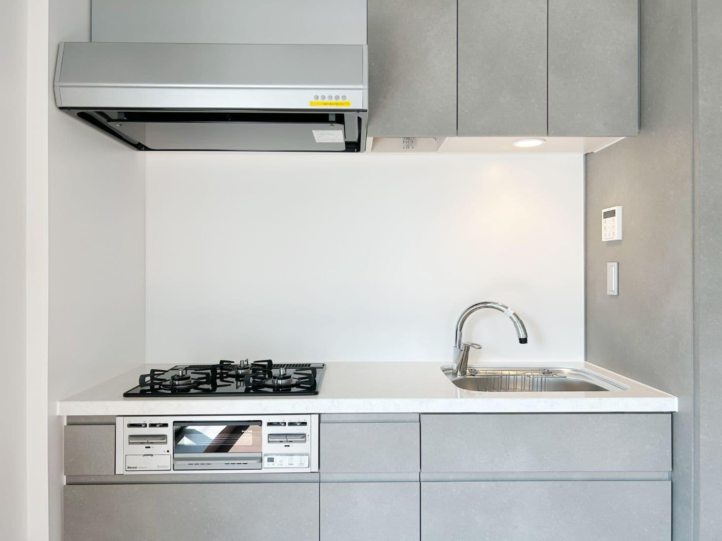 【掲載写真304号室】3口ガスコンロ、グリル付きのキッチン