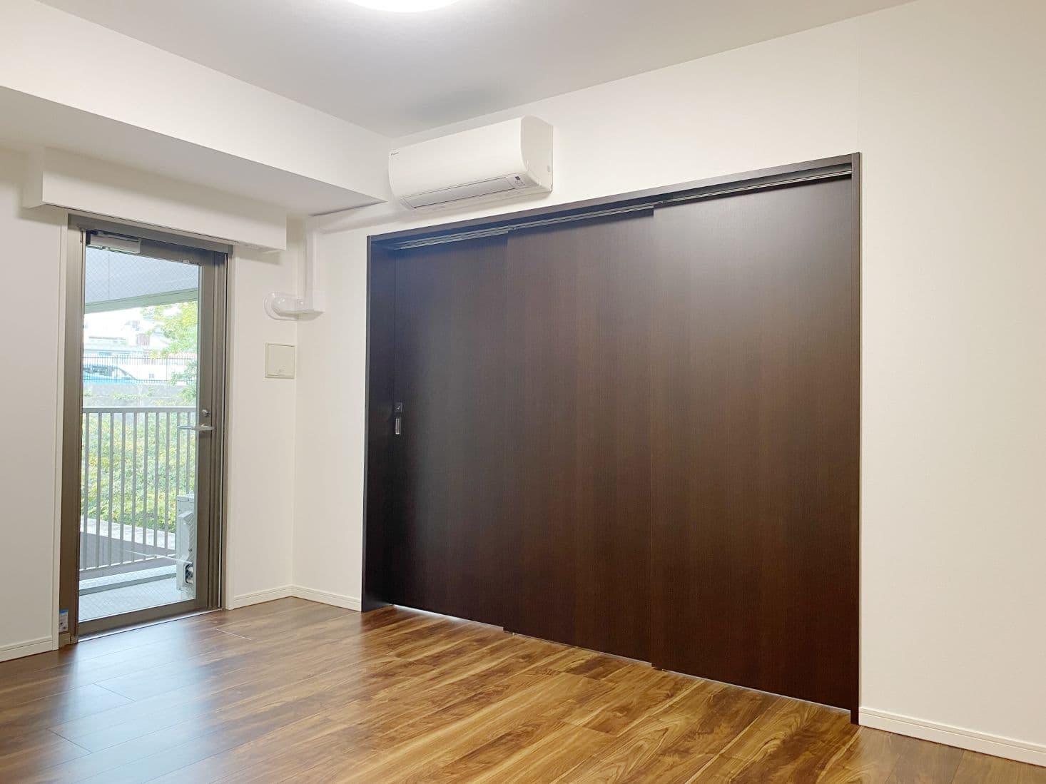 1LDKのお部屋はシックに纏められ、窓からイチョウの木が顔を覗かせてくれています。