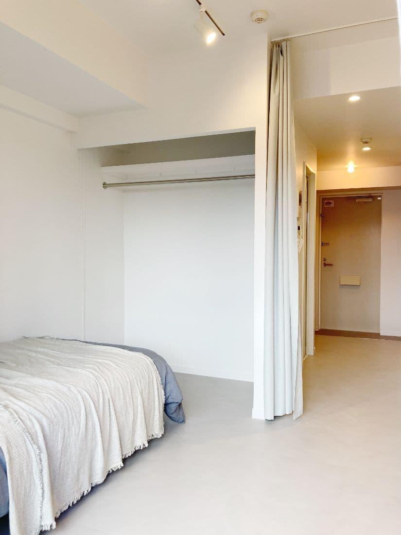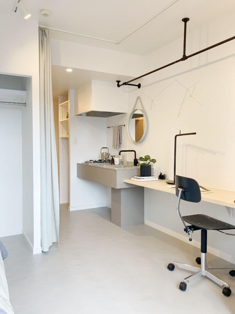 Aタイプのお部屋は、ホワイト×グレーで統一された1R。