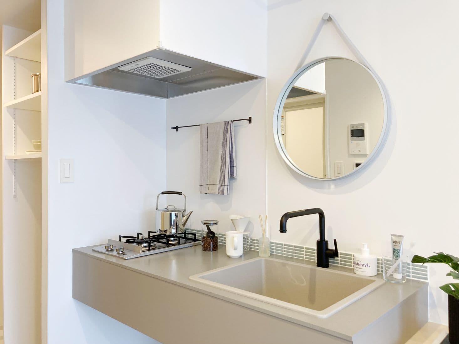 可愛いモルタル風仕上げのキッチンも魅力の一つです。