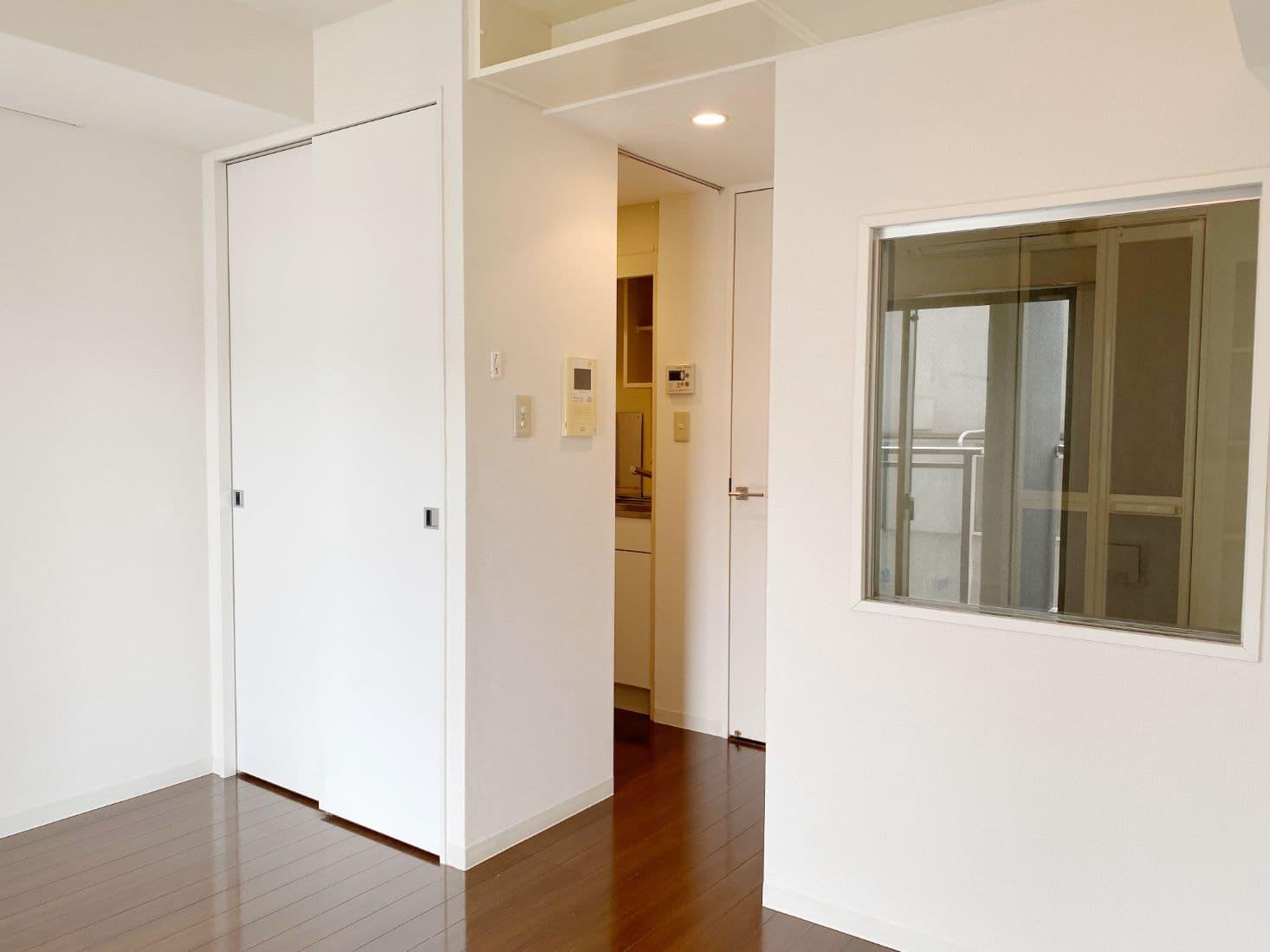 工夫ひとつめは、キッチンと洋室を仕切るふたつの扉。
