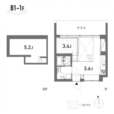 108号室は、高低差のある立体的な空間。