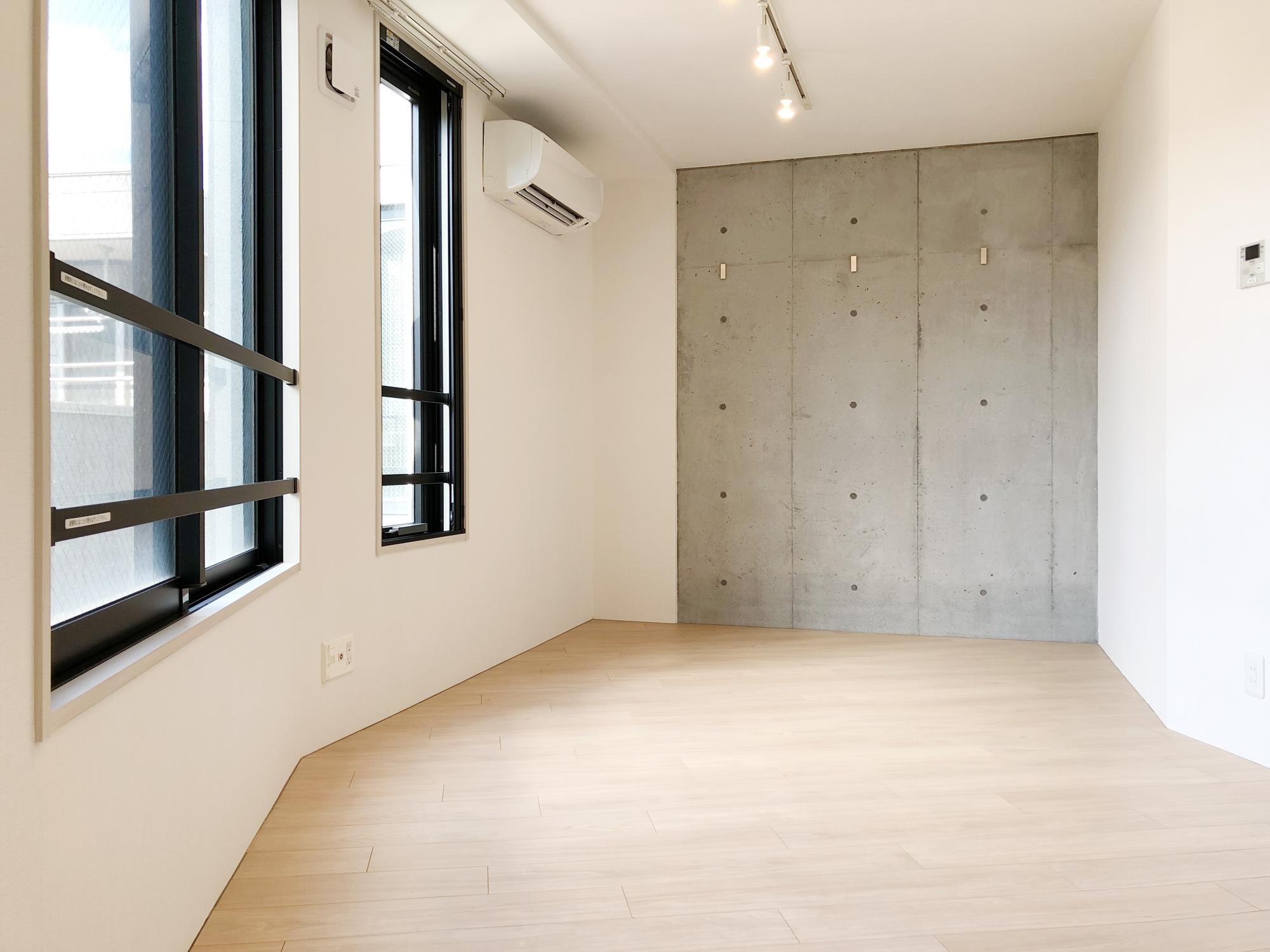 コンクリート打ちっ放しの壁とライティングレールがお洒落だったり、