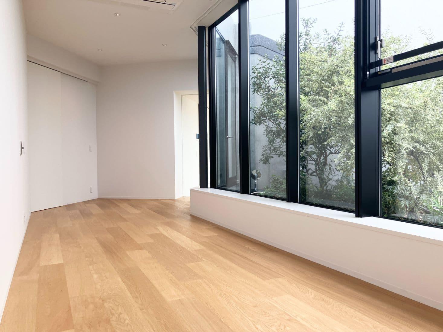 中庭に面した洋室。緑を見ながら仕事や趣味を楽しめるお部屋にしたいですね。