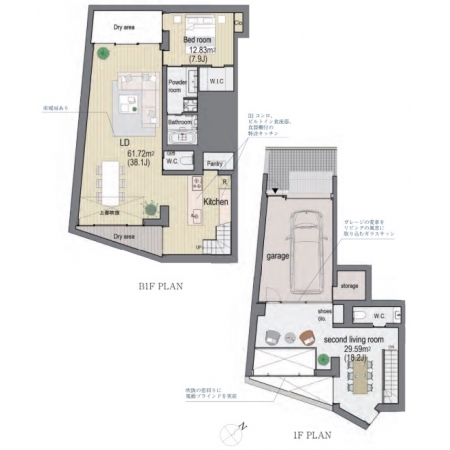 愛車をオブジェのように駐車できるガレージ付き住戸。