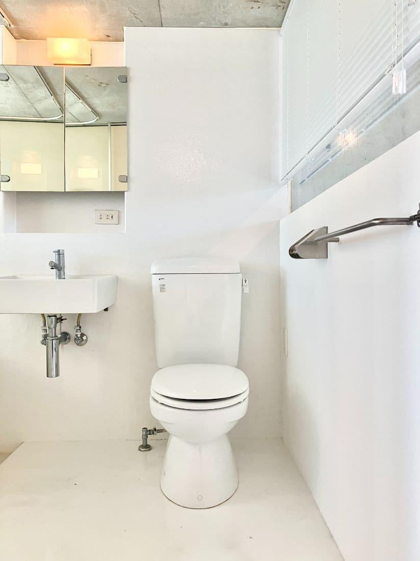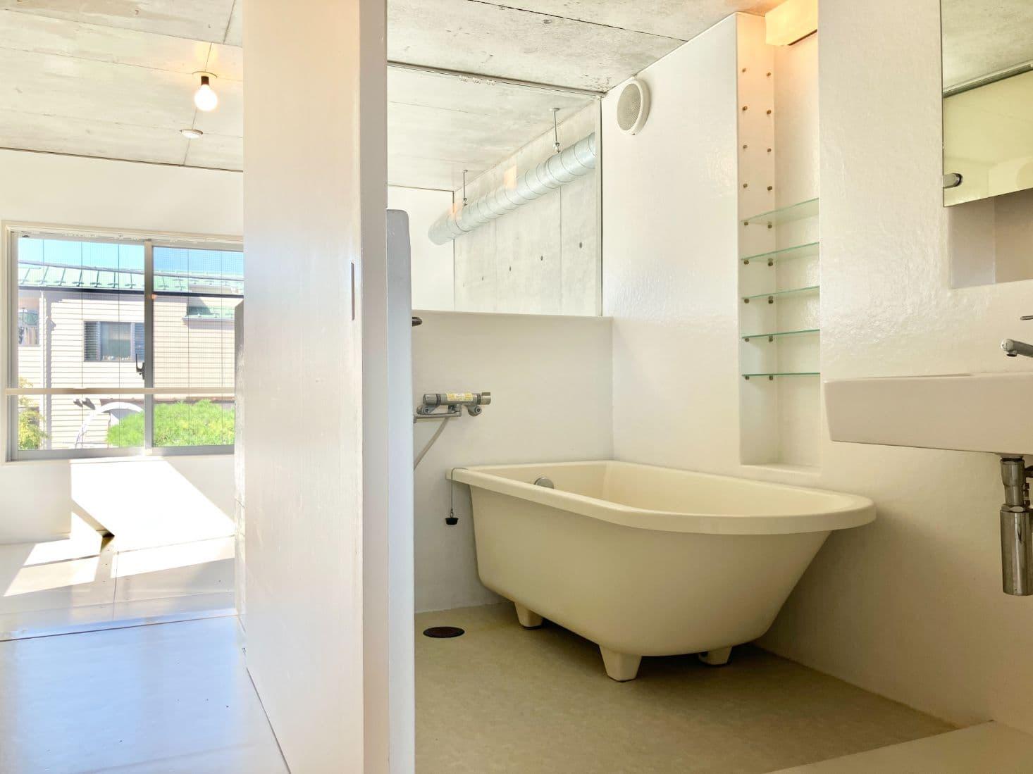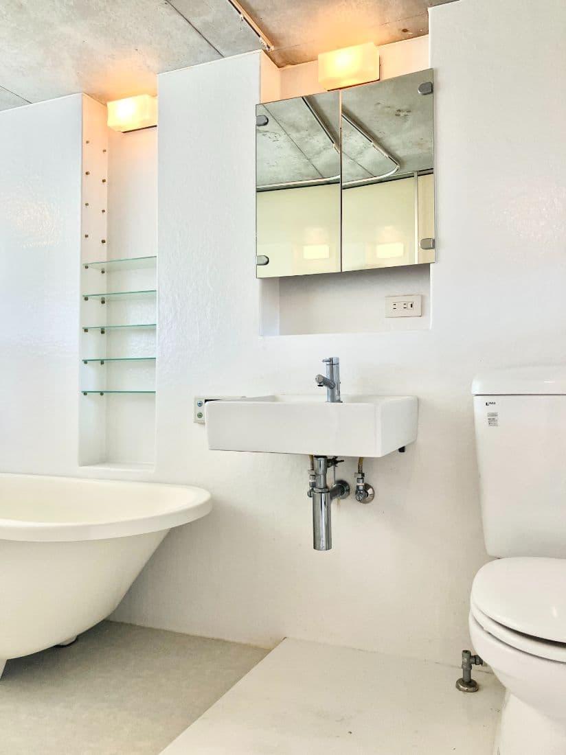 バスルームの上半分はガラス張りになっていて、デザイナーズ感満載です。