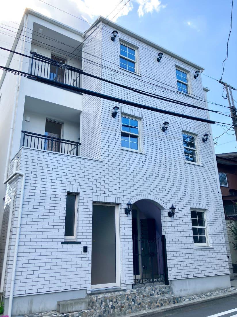 白タイルのメルヘンチックな外観。
