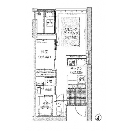 345号室はベッドルームはコンパクトですが、扉で仕切れる1LDKタイプ。