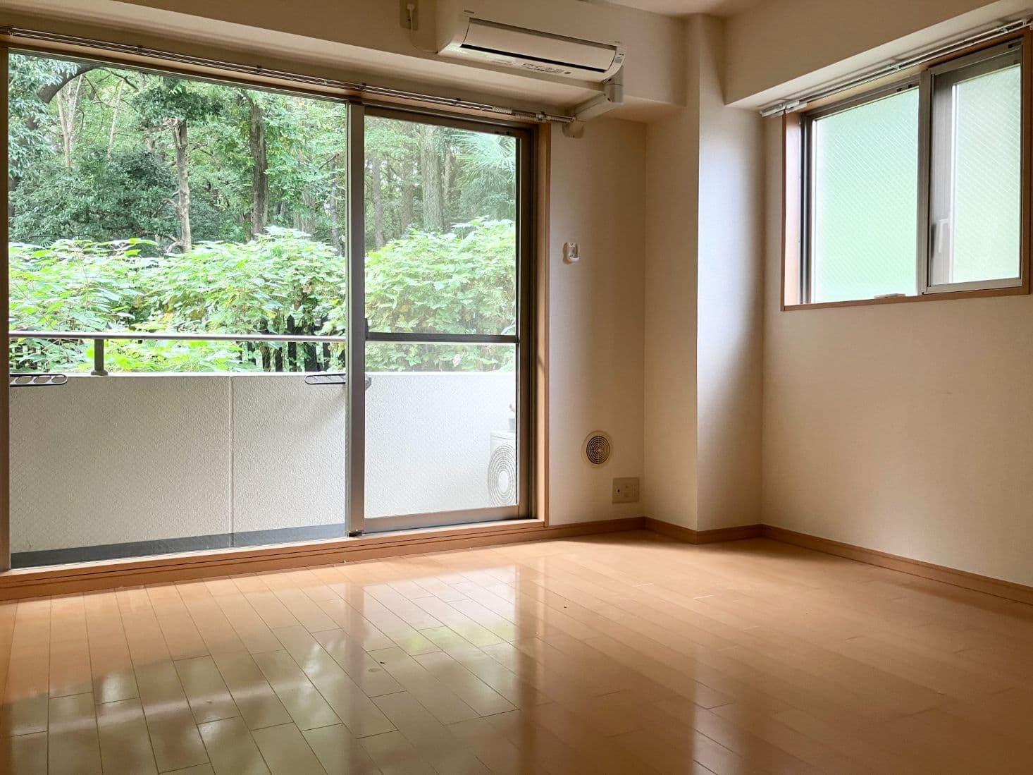 本物件、裏がまさに明治神宮の豊かな杜と接しているんです。