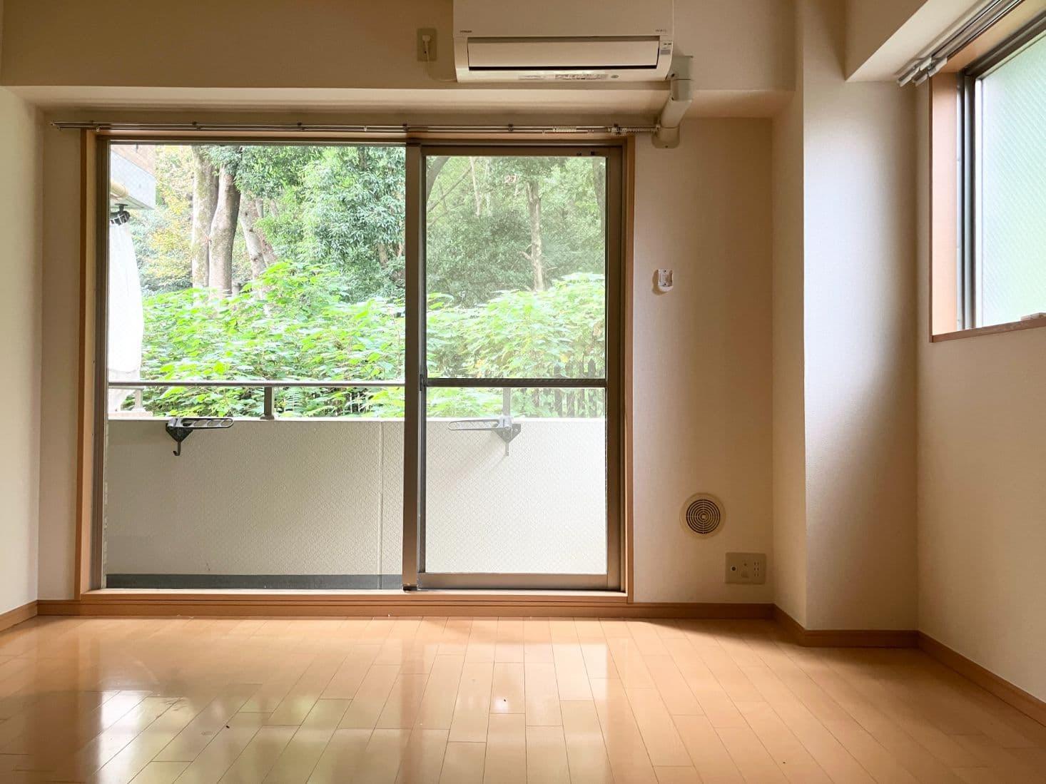 窓からも神宮の緑が望める素敵なお部屋ですが、玄関側が首都高速と面しているため騒音は否めません。