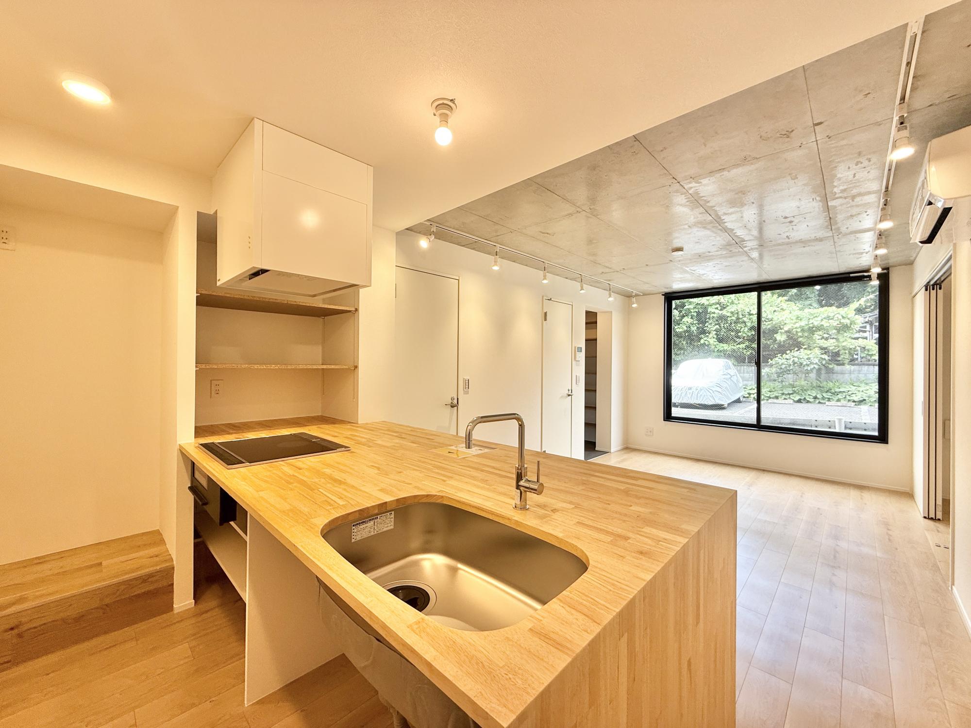 扉を開ければ、そこにあるのはコンクリートと光が織りなす無垢な空間です。1階の2LDKは、角部屋ならではの二面採光が、無機質な壁面に刻一刻と変わる影の彫刻を描き出します。