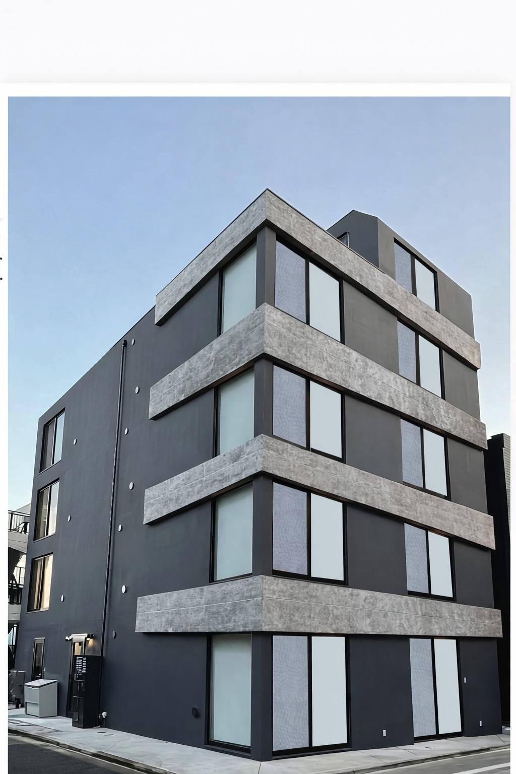 駅前の商店街を抜け、賑わいから少しだけ離れた場所に佇む、コンクリートとダークグレーで構成されたモダンな建物が今回の舞台です。徒歩7分という駅からの程よい距離感もいい感じ。