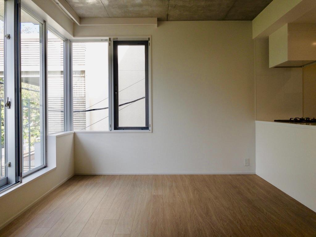 お部屋はナチュラルな木のフローリングにまっさらな白壁、