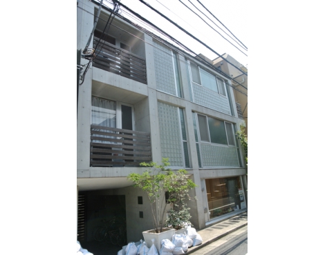 中庭はグレーチングの階段とガラスブロックが美しく入り込んだ空間に。