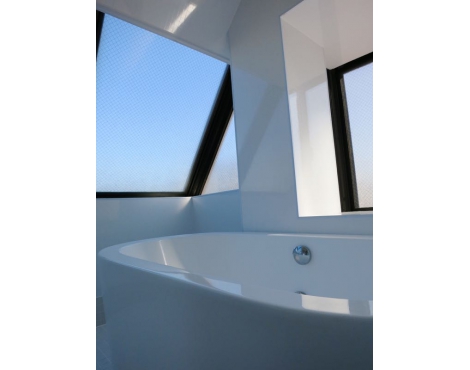 バスルームは大きな窓に囲まれていて、