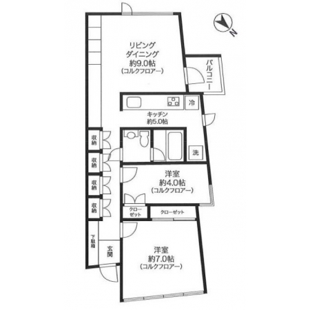 徒歩4分 57.3㎡ 2LDK 1989年05月